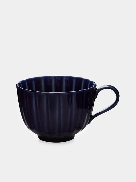 This stripy cup! And really, the whole set. I absolutely daydream about having a set of matching coffee cups, with saucers, and probably an adorable little milk jug as well, but the reality is that I drink my coffee out of a thimble-sized vessel without a handle or a saucer, and I have about a million charming little cups already, beautifully mismatched. I saw this blue Japanese crockery in David Mellow a little while ago and fell in love with it, and then found it again on Abask. The price means it’s very unlikely I will ever own any of it, but I still enjoy admiring it. And this little cup from David Mellor - I already have the dark violet one so I could see a tiny collection of these happening…